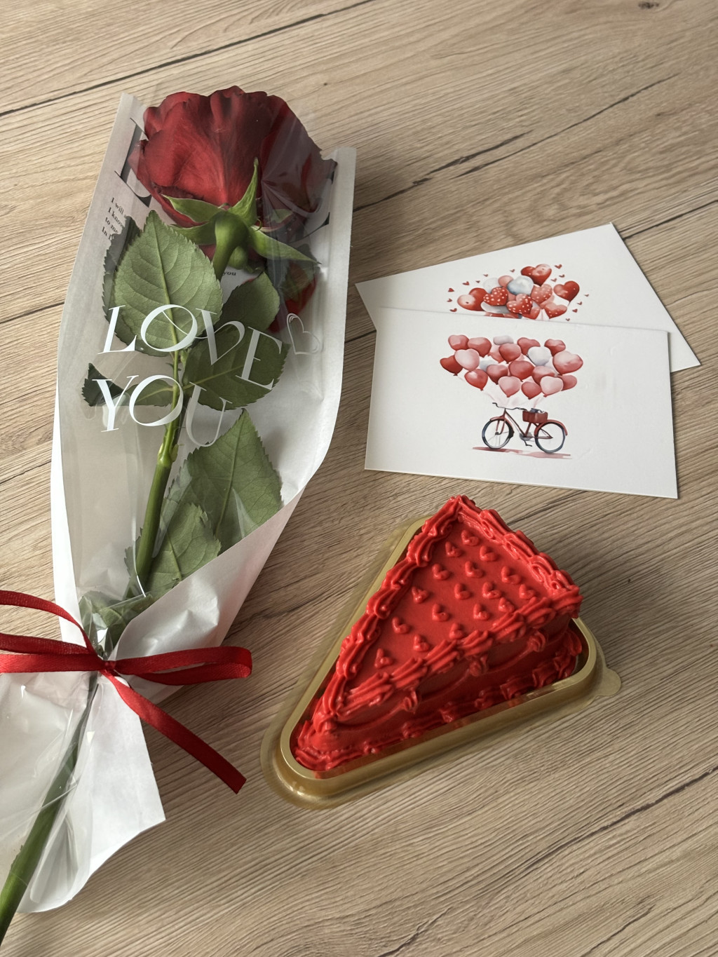 A slice of cake and a single flower – simple, yet truly heartfelt.